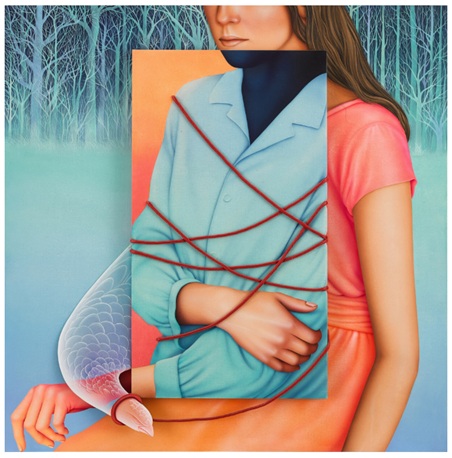 キャンバスにアクリル,木製パネル,木製切り抜き,ポリエステルロープ